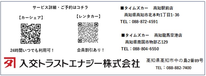 第41回法人会全国大会高知大会のカーシェア・レンタカーサービスのご案内 2025年9月30日2025年9月30日 高知県連おすすめのカーシェア・レンタカーサービスを掲載しています。 全国大会にご参加される方は参考にしてくだされば幸いです。